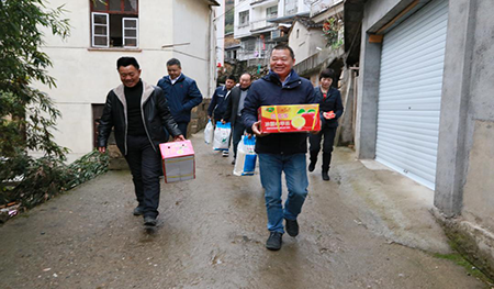 1月17日,金年会党委书记、董事长陈德水,副董事长余建明,工会主席曹建宏等一行再一次来到村头镇青山村,走访慰问困难群众。